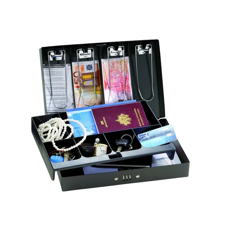 + COFFRE À MONNAIE: coffre de sécurité pouvant recevoir des documents au format standard pour assurer la protection de vos papiers et de votre argent