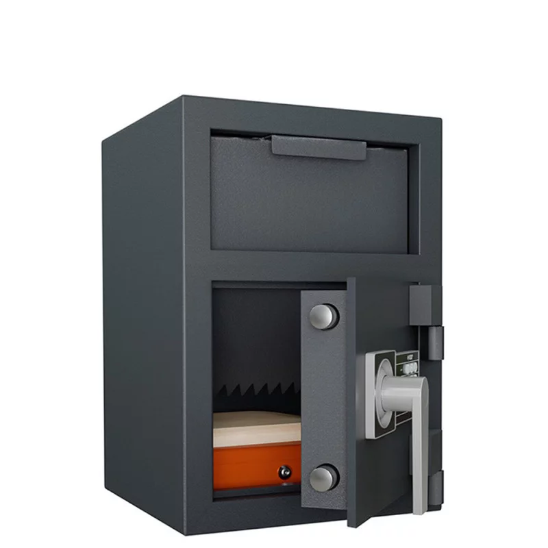 Ce coffre est équipé d’un tiroir de dépôt anti-pêche permettant l’introduction rapide des valeurs sans accès direct au compartiment principal. Ce dispositif réduit considérablement les risques de vol interne et améliore la sécurité des opérations quotidiennes.